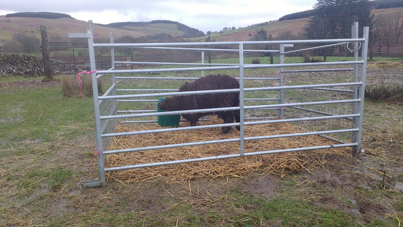 Anyway, the she-human brought some hay into the pen. After I’d scoffed the shreddy stuff, I tucked into the hay. The human seemed very excited by this, can’t think why. But it was a lot easier eating it like this than at the feeders where there was always a bit of argy bargy going. We sheep, we’re always arguing about the same piece of hay.