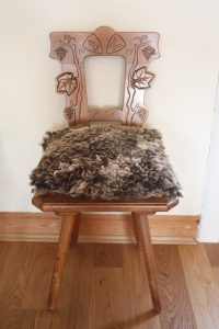 Home / Felted Fleece Cushions / Homegrown, felted fleece “sheepskin” cushion, natural brown, grey with caramel tips – Coloured Ryeland lamb fleece / felted fleece cushion chair