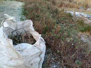 Over the last couple of weeks we’ve been making progress although it’s one of those jobs that’s going to be lingering on the to-do list for a while. This said, de-brambling is sort of enjoyable and digging out the main nodes can be particularly satisfying. The main plant grows like a huge spider with multiple ‘legs’, each leg growing its own set of roots and reaching out to conquer new territory. If caught in time these leggy tendrils are only shallowly rooted and come out quite easily, if you can get past the thorns that is. Unfortunately after making steady progress these last few days we’ve had to stop temporarily. The weather has turned very cold and the ground is too hard to dig. It is also snowing so we’re not sure when we can get back to it. In the meantime we have decided to treat ourselves to some new thorn-proof gloves as we are full of splinters.
