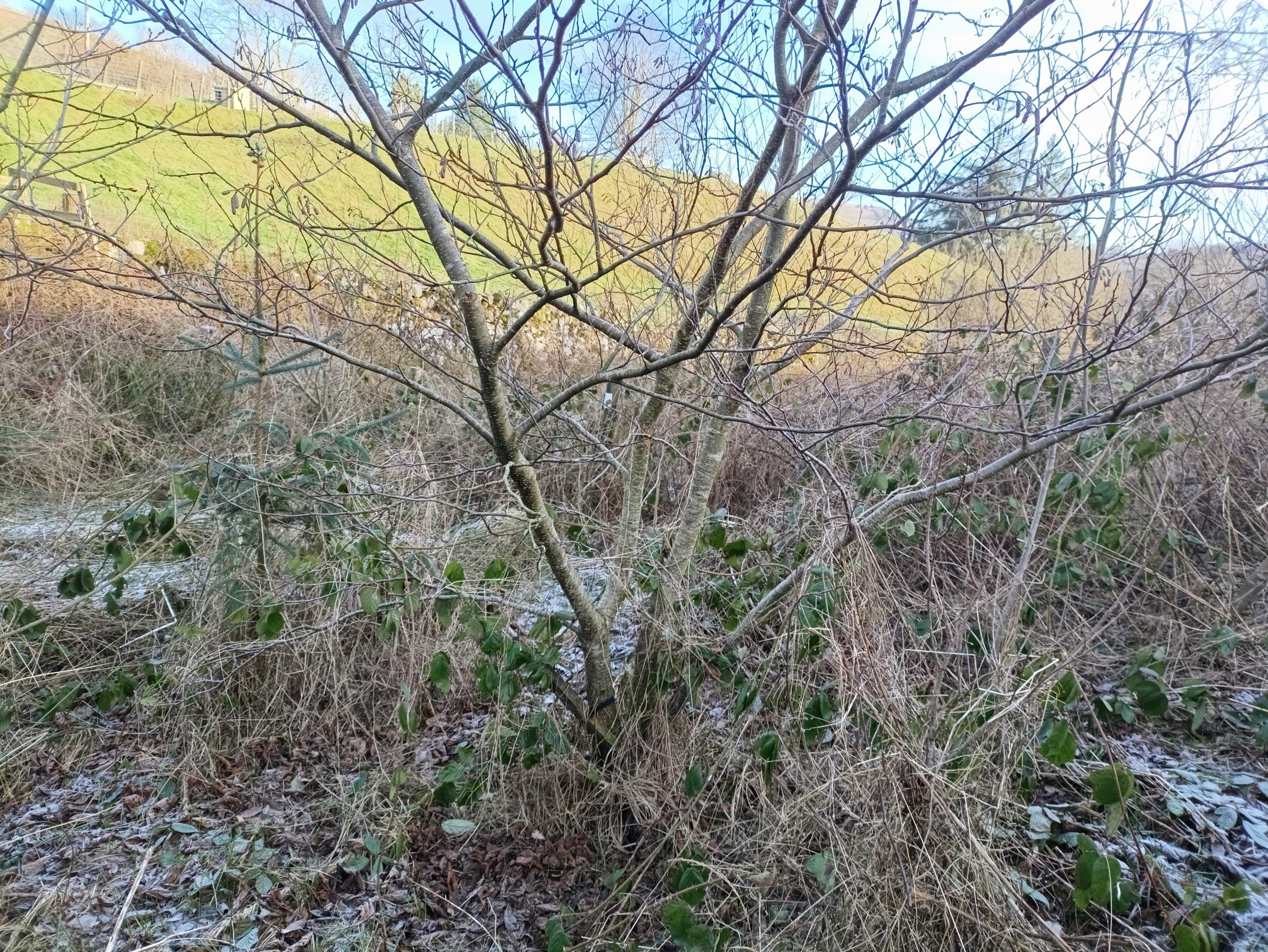 Over the Christmas period the weather was surprisingly good, sunny and dry with the odd sprinkling of frost – perfect for getting rosy cheeks working in the garden. We decided I would tackle the woodland and Adrian would brave the bank behind the veggie patch. Normally we wouldn’t worry about brambles growing in a woodland. In fact brambles are great for keeping deer from nibbling young trees, sort of natural tree guards. But this particular woodland borders two grazing areas and the brambles were busy sending out long rooting tendrils into the neighbouring fields. Sheep and brambles are not a good mix, sheep can get tangled up and trapped. Back when we were beginner smallholders we didn’t realise this was a thing until we found one of our tups all caught up in a hedge looking very miserable. It took us a while to free him and ever since we’ve been extra careful to keep our fields bramble-free.