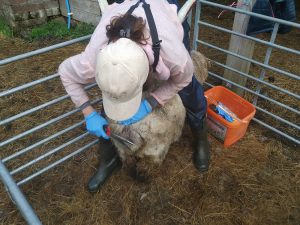 The other change we’ve made this year is to purchase a “backeze” sling by Longhorn. You can see me using it in the photo. It’s just brilliant! It gives support to your back exactly where you need it but is also springy so you can adjust position easily. It’s made those weekly bottom trims much easier, happy us, happy sheep!