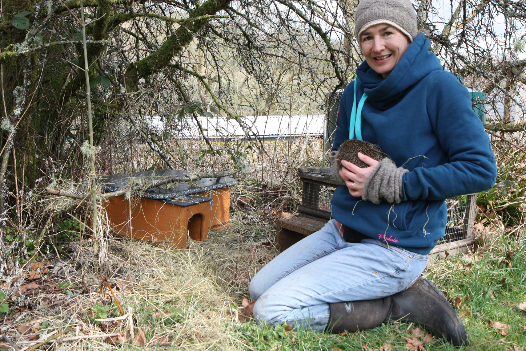 We had a hedgehog house set up under a bush and we stuffed it full of fresh hay. We also added some hay from her indoor bed so that she would recognise her smell. Next to it we placed a cat and dog-proof feeding station that I built years ago so we can continue to provide food.