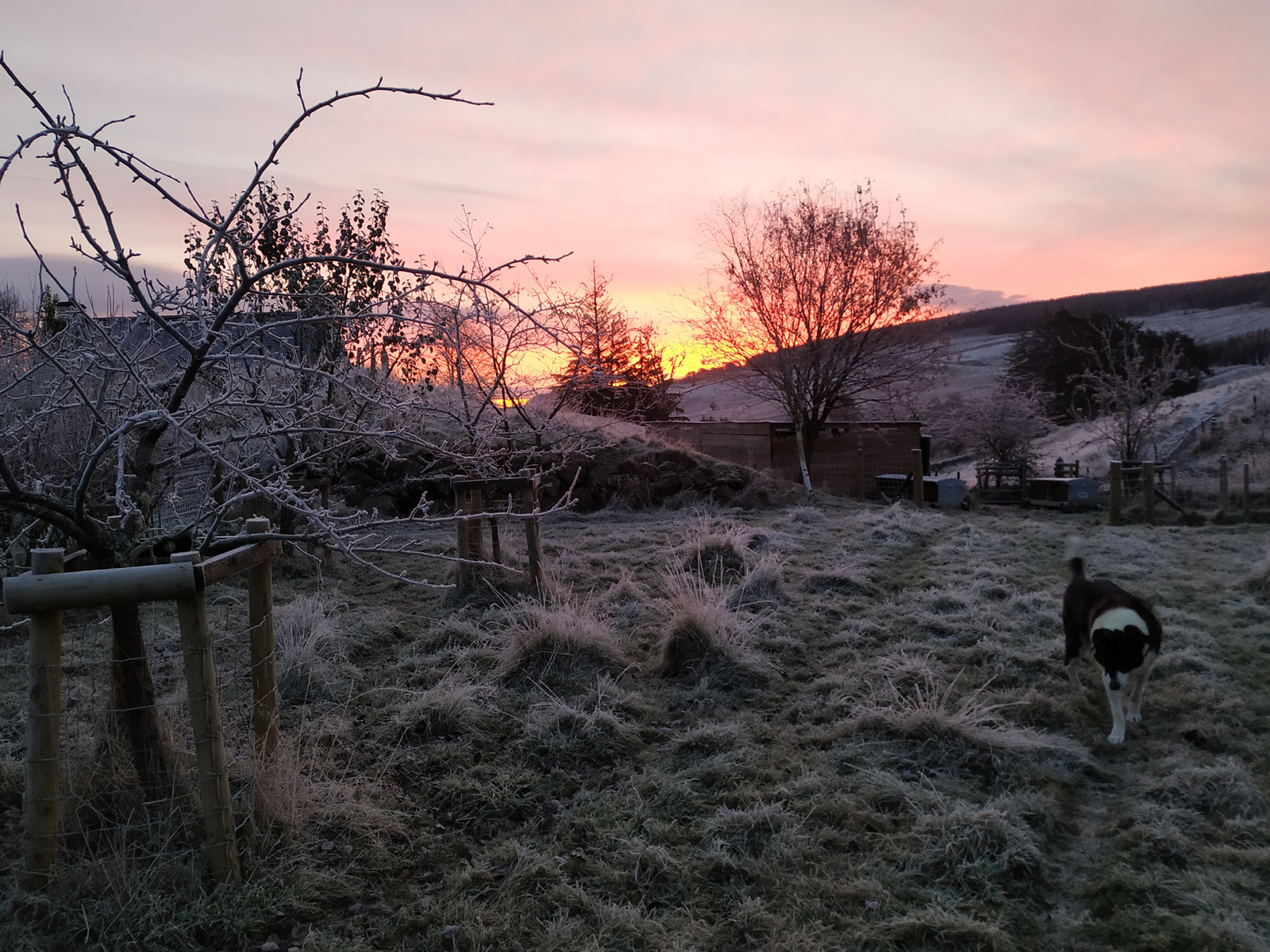 The best part of the frosty weather is the sunrises we get here. Looking out to the east, we see the sun rising over the hills casting it’s red and orange glows across the sky. It’s a very peaceful time of the day.