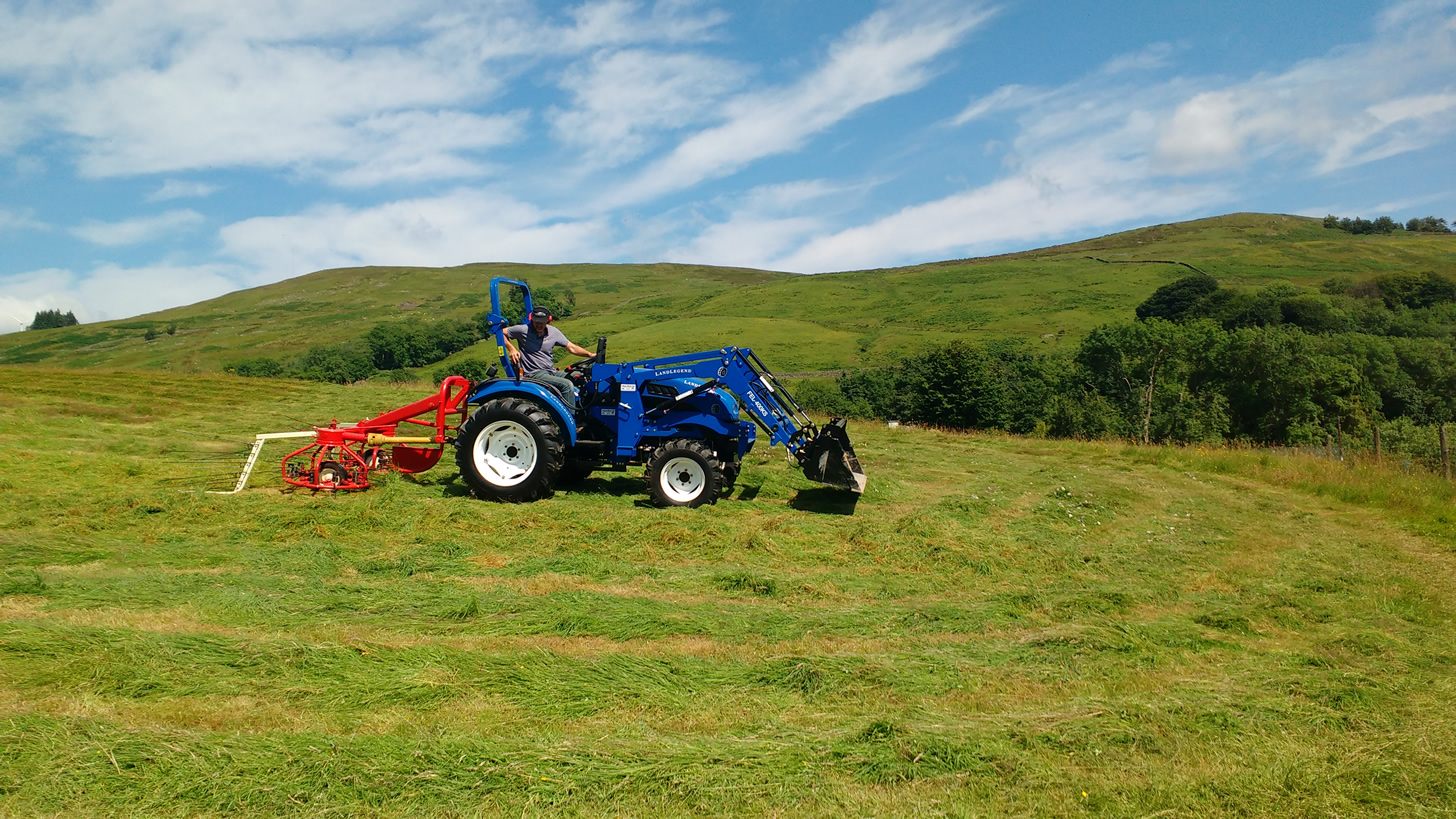 Monday was a glorious sunny day, perfect for making hay.  Our neighbour with tractor and mower arrived and once everything was set up (our second hand hay bob proving a bit troublesome), off we went.