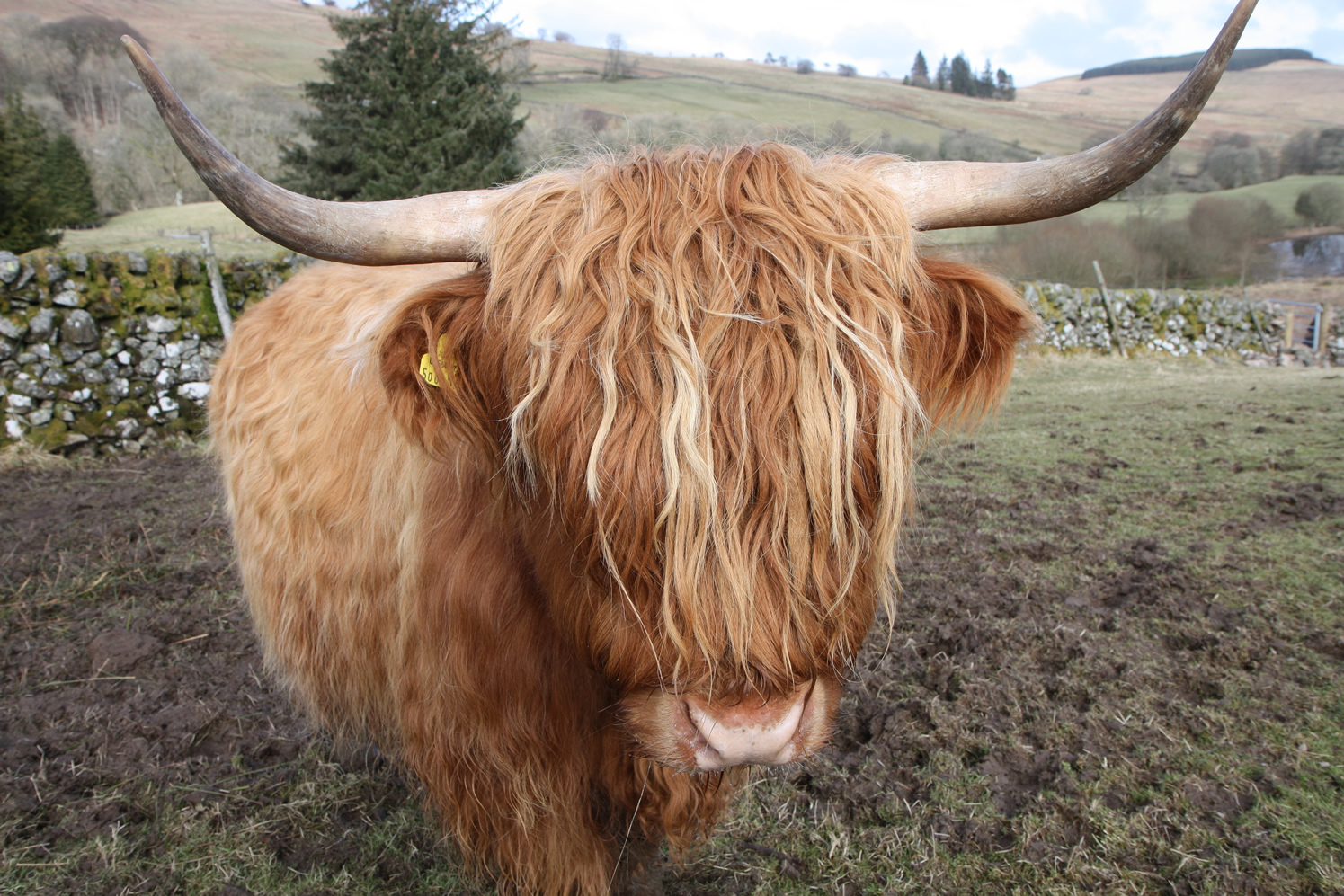 Today, the sun has shone brightly and we have managed to give all the sheep their annual booster.  This was despite the cows coming rushing through their new gate and over to see what we were up to.  We had the sheep treatment pen next to the fence resulting in two big faces with horns attached leaning over the fence trying to get to the sheep nuts.  We had to put move them out and shut the gate – they were not impressed. And an unimpressed highland cow can be quite scary, hats off to Nicole for leading them away while I attached the gate.  We made it up to them later by giving them a fresh bale of haylage.