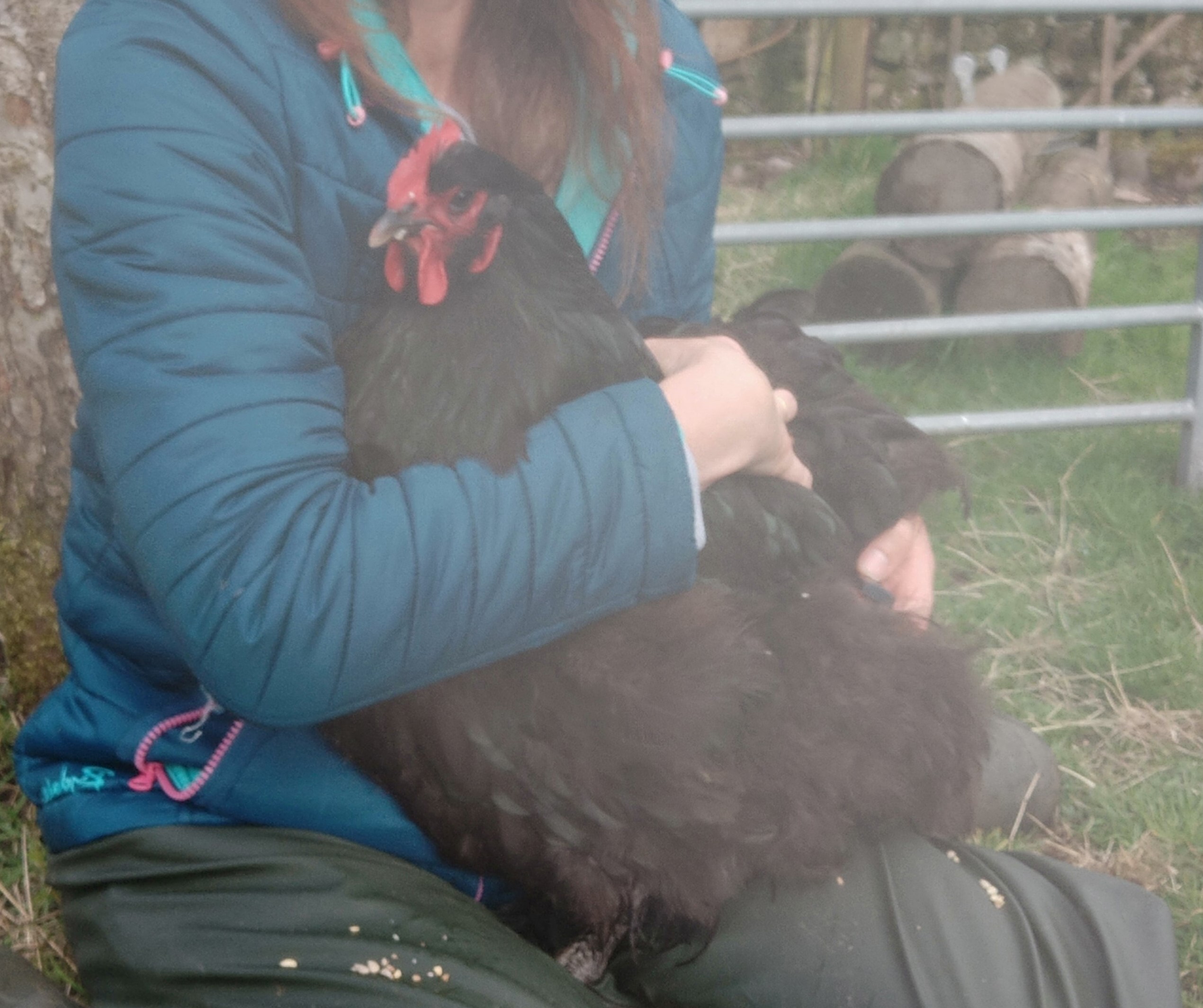 The next morning we let them out again. The other hens mooched off to the lambing shed and Betty and her chick stayed in the orchard. It was a lovely day and I picked some blueberries from a bush in the garden, squished them up in my fingers and gave them to Betty who fed tiny pieces to her chick. I watched them for a while and took some photos. Then I nipped indoors to get something. When I came out again Betty was sitting in the wooden shelter. I had a strange feeling something was wrong, there was something about Betty that didn’t look right. A hen sitting on a chick looks slightly different from a hen just sitting. I lifted her up and my heart sank, there was no chick under her. I looked around but there was no sign of our little chick. I ran indoors and called Adrian and we both searched high and low. Every young bird tweeting, every leaf and fallen apple gave us false hope. But in the end there was nothing, no chick, no sign, just Betty and us looking and finding nothing.
