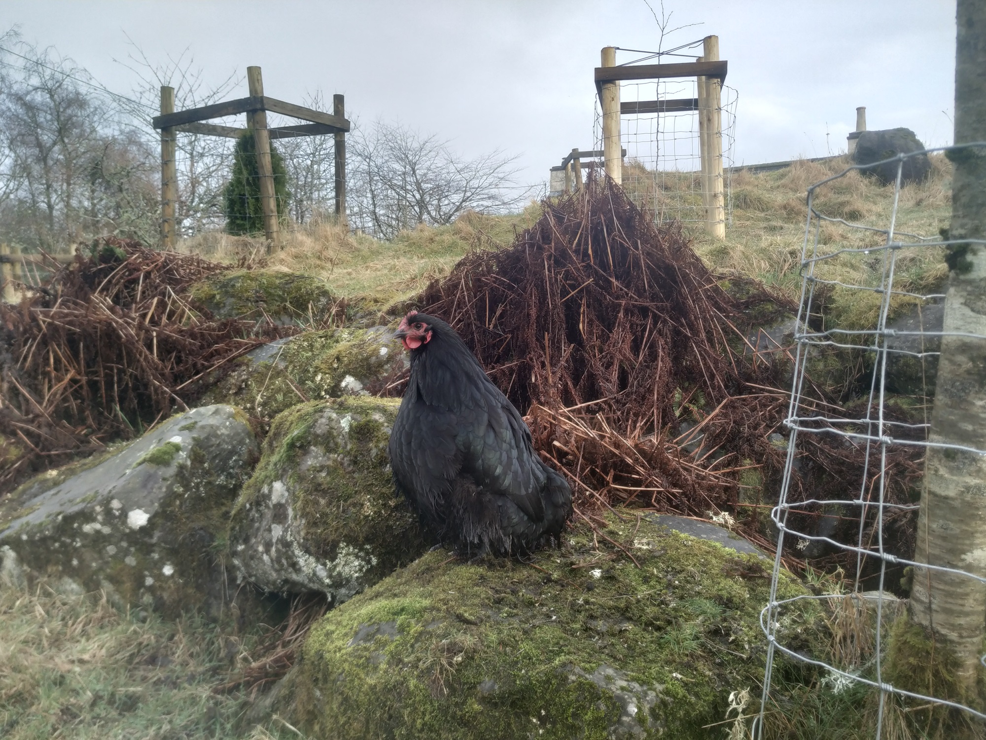 Betty’s hormones stayed with her for another week. In the evenings when we scattered corn Betty still made clucking sounds and pushed corn around with her beak. But now she is back to her old self. Animals get over things quickly, at least they appear to. We will never know what happened to Betty’s chick. Perhaps a crow swooped in and took her, but it could equally have been a sparrow hawk or a stoat, there are predators all around us. In the meantime life goes on and we will always have precious memories of Betty’s wee chick for the short time she was with us.