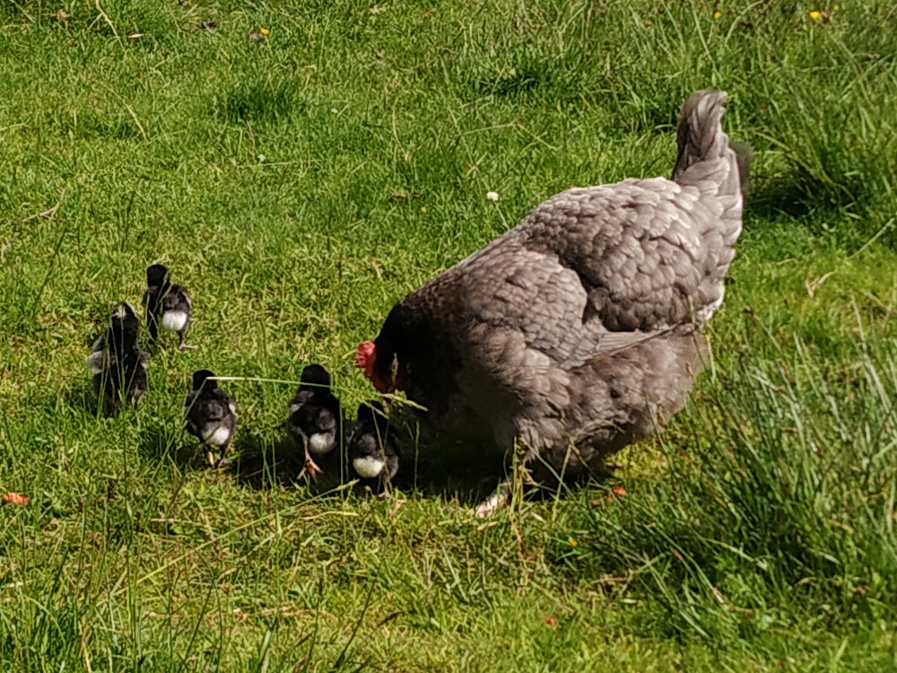 We thought things were settling by now, however, we hadn’t made allowances for Clippy. Clippy is the flock matriarch and the most feral. She likes her wild camping. That would be fine, but she also feels the need to announce it to the world. Next evening, MMJ and the chicks were happily ensconced in the coop when Clippy flew onto the roof on her way to the bush. She clucked her intentions out loud and the chicks all rushed out to see. Cue mass disruption as other hens joined in.