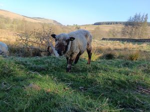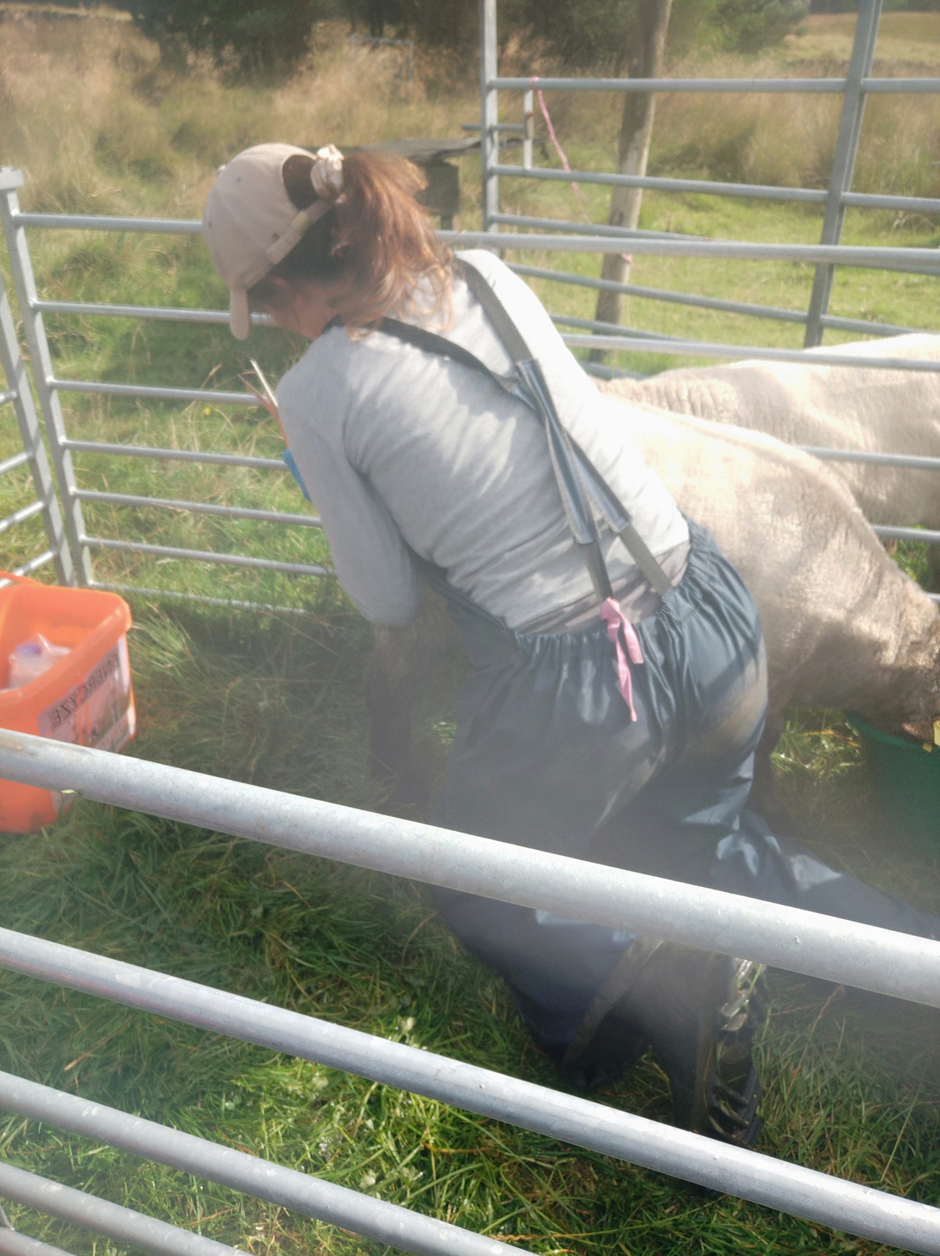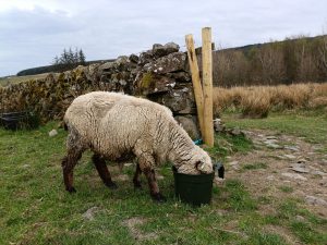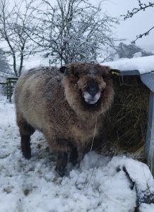 But, the following summer, round about the middle of May, Vera’s “itchies” returned. She had good days and not so good days depending on how sunny it was. On cloudy days she trundled around grazing with the flock. But on sunny days she hid in one of the field shelters we have dotted around. We took to giving her daily check-ups and applied udder-cream to her un-woolled parts, mainly the backs of her legs, ears and bottom which she seemed to enjoy. If she was especially itchy we gave her a steroid. In June when it came round to shearing we decided not to have her done with the rest of the flock. Instead I carefully removed her fleece myself using hand-shears so I could leave a covering of wool on her to protect her from the sun. We also took into account her mood. Vera’s a placid sheep and isn’t phased by much, even on bad days she remained in good spirits. She took to “baa’ing” if she spotted us coming into the field with her pot of udder cream as if to say ‘Cooeee! I’m over here!’ But all the while in the backs of our minds we knew there might be a day when we’d have to make a difficult decision. Thankfully that never happened, perhaps because the summers here in SW Scotland aren’t too hot and are relatively short, so we carried on taking care of Vera in this manner summer after summer.