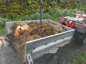 But what to do about the Angelica? Attempting to dig it out again would be depressingly reminiscent of Groundhog Day. There were clumps of it in three of our fields where otherwise there’s excellent grazing. We couldn’t just shut the gates and deny our sheep all that pasture. I thought about cracking open some Glyphosate but I’m not keen on chemicals, plus Angelica likes to grow in soggy soil and I didn’t like the idea of spraying near water. I also reckoned Angelica would need more than one squirt as it’s a pretty vigorous plant. So I had a cup of tea which is always helpful at times like this. Fortunately a few minutes into my cuppa inspiration hit, I would put up some temporary fencing. Sheep netting in other words!