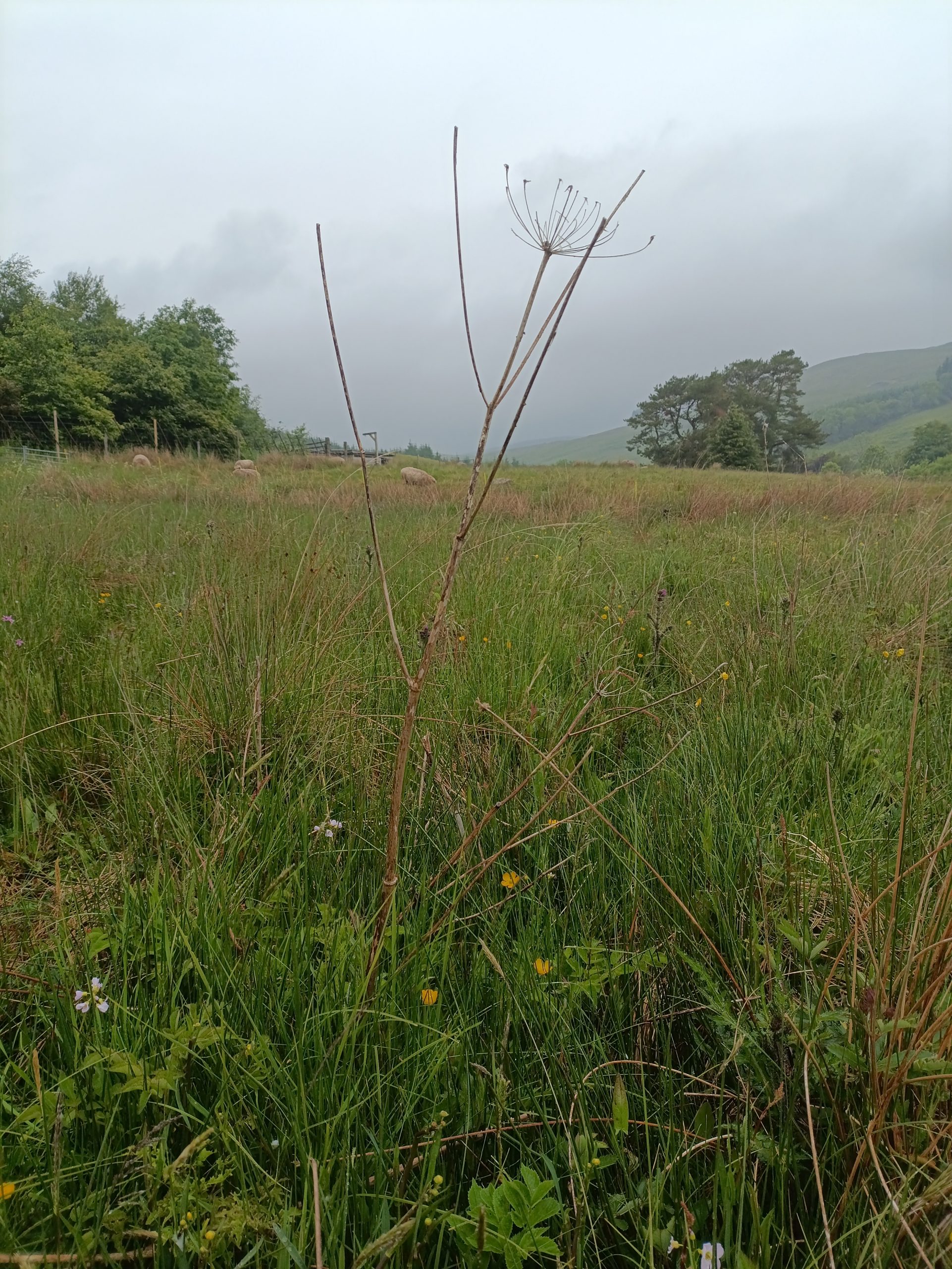 As we don’t have St John’s Wort or Bog Asphodel we thought the most likely culprit was Angelica. We have plenty of it on our pastures, it grows in damp shade which we have plenty of as well. Similar-looking to Cow Parsely, Angelica is an elegant plant with a long tap root and clouds of tiny white flowers atop a tall stem.