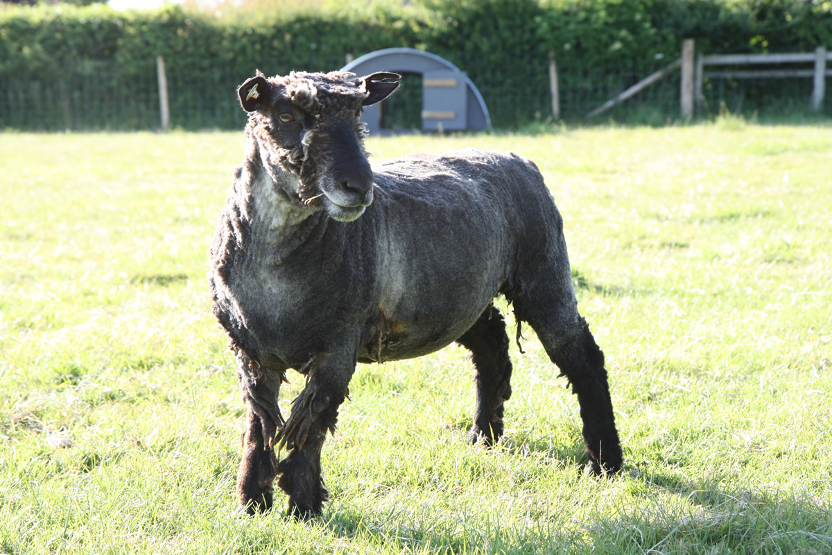 bluemli coloured ryeland sheep in new field