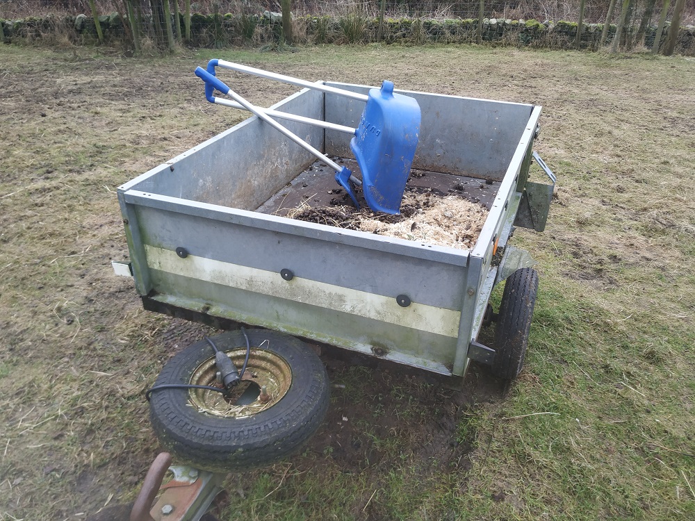 But despite my efforts shovelling dung into the trailer each day, a small amount manages to somehow build up, secretly and stealthily like a woodland fungus, so slowly that it goes almost undetected.  Until one day you walk into the shed and wonder why you’re scraping your head on the ceiling.