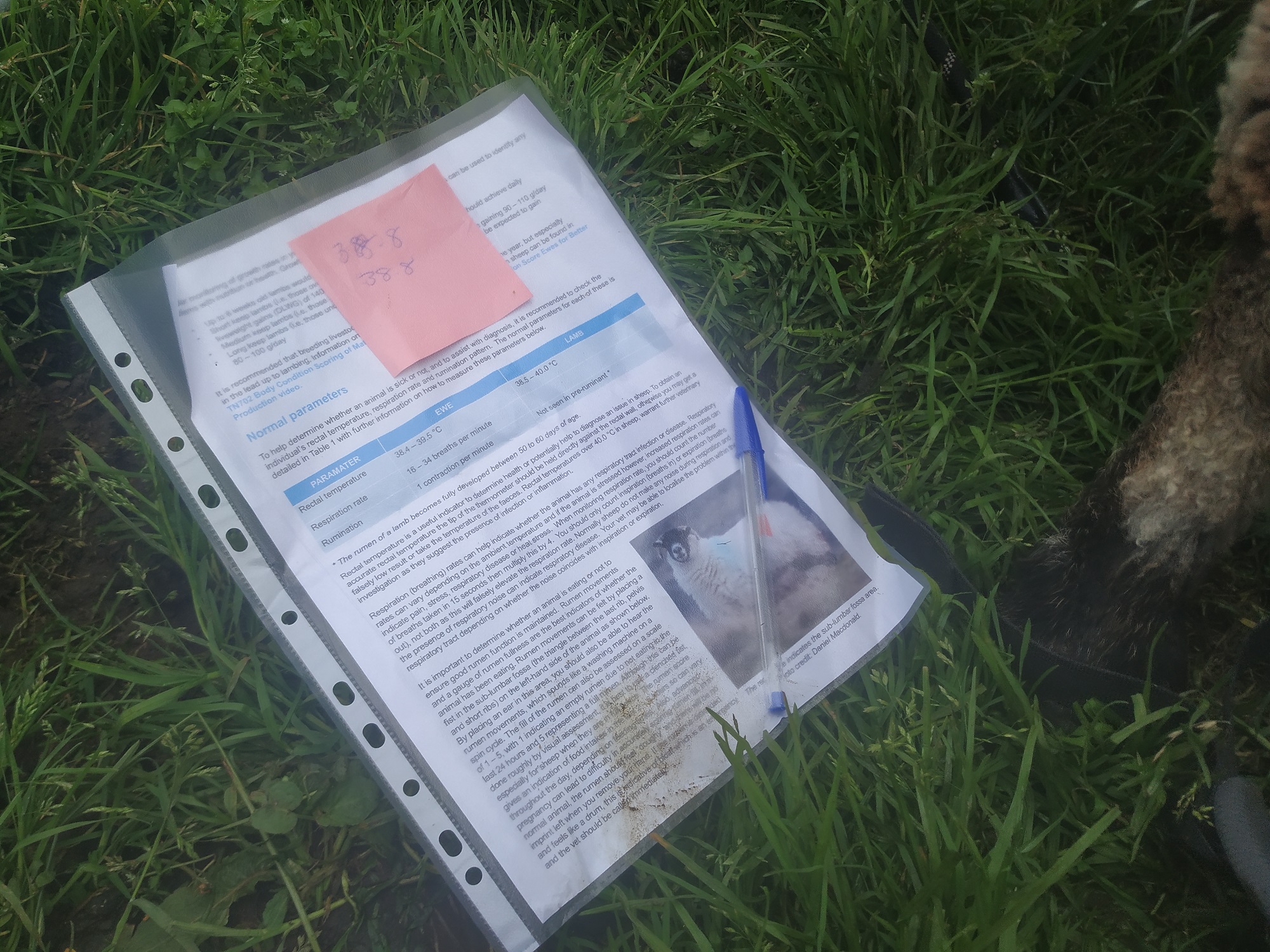 After much rummaging in the cupboard I found four thermometers, all in working order (amazingly!)  I grabbed one and also a halter and some sheep nuts for all eventualities.  At the last minute I also stuffed into my rucksack my ‘sheep health fact sheet’ and a pen.