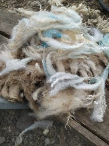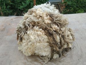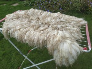 Once I’ve unravelled my fleece, the first thing I’ll do is, straighten it out and remove the “daggy” and matted wool from around the edges.