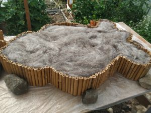 Then I’ll add the carded batts (which will form the base of the rug). Once that’s done I can prepare for the felting part; adding the net curtain, soap, water and so on.