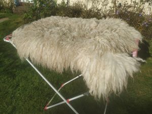 It’s great to know we can produce these rugs right here on our smallholding. For more info on what goes into the rugs click here. But apart from all of this, the rugs are hugely satisfying to make, there is nothing like seeing a raw fleece transform into a big, soft, fluffy rug.