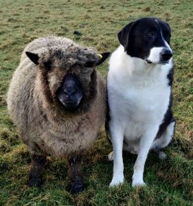 We also love dogs and have always had rescue dogs. At the moment we just have George, our Anatolian Shephard mix, a rescue from Greece. George is happiest around the sheep, his breed is “Sheep Guardian” so he’s naturally drawn them. His favourite sheep friend is Ursi, they are great pals.