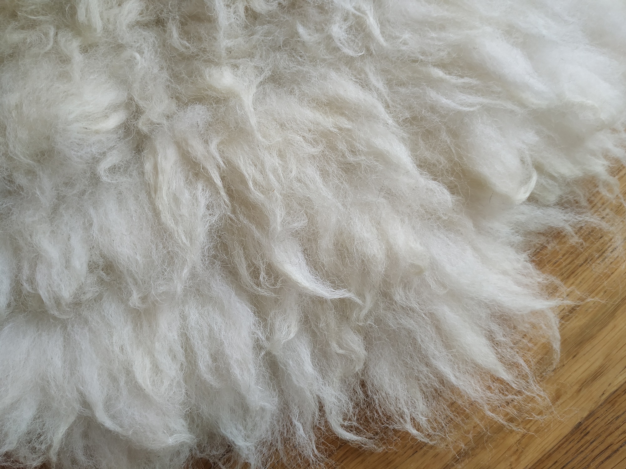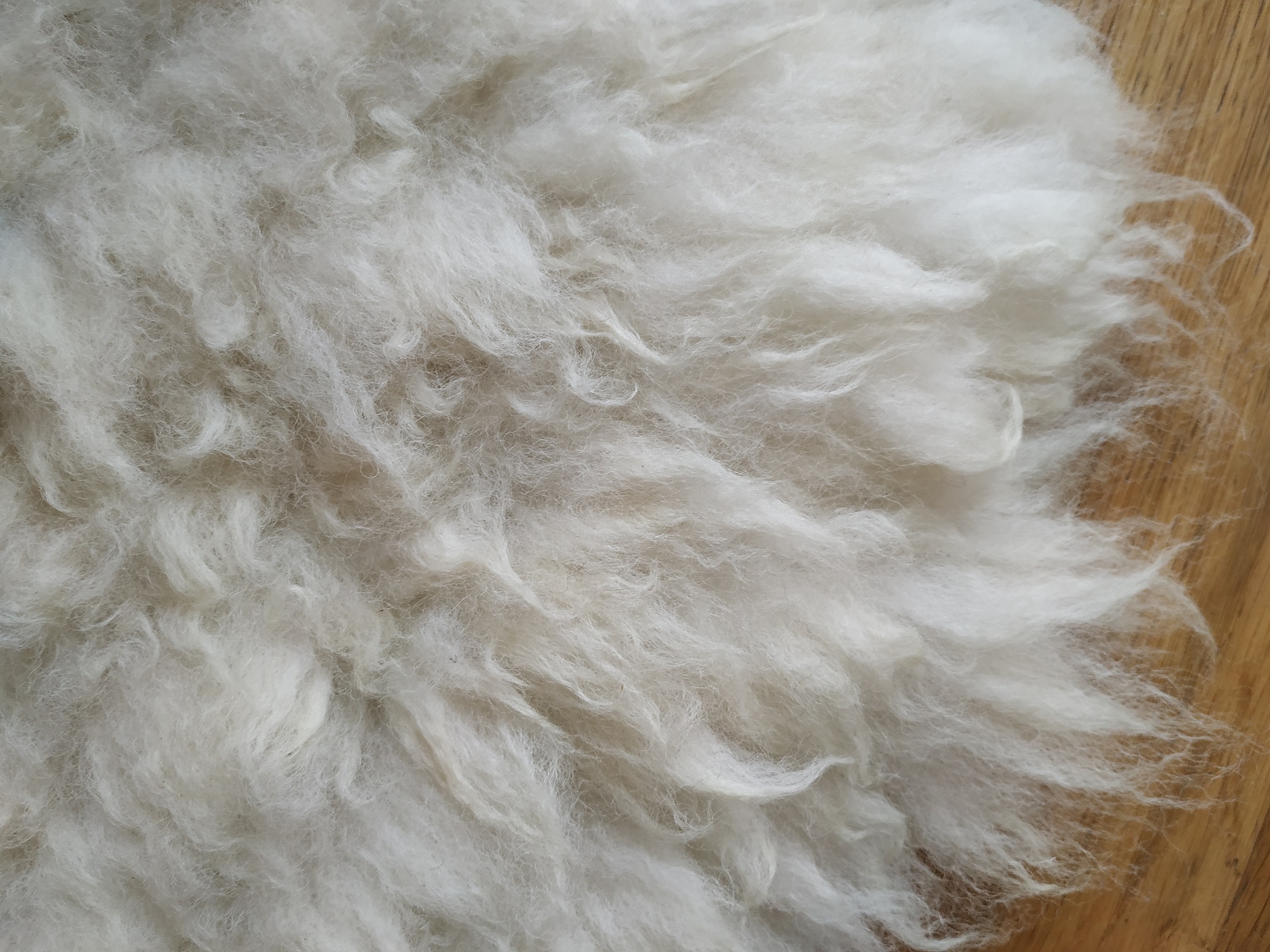 Texel x Herdwick sheep have creamy coloured, thick and springy wool. Click here for further info about this breed and the wool characteristics of these lovely sheep.