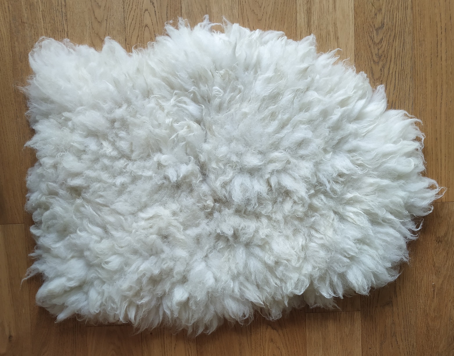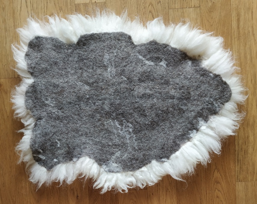 Felted fleece rugs are totally “sheep friendly”. No sheep are harmed in the process of making them, hurray! They may look just like sheepskin rugs but if you turn one over, you will see the base of the rug is made entirely of wool, not a hint of hide in sight.