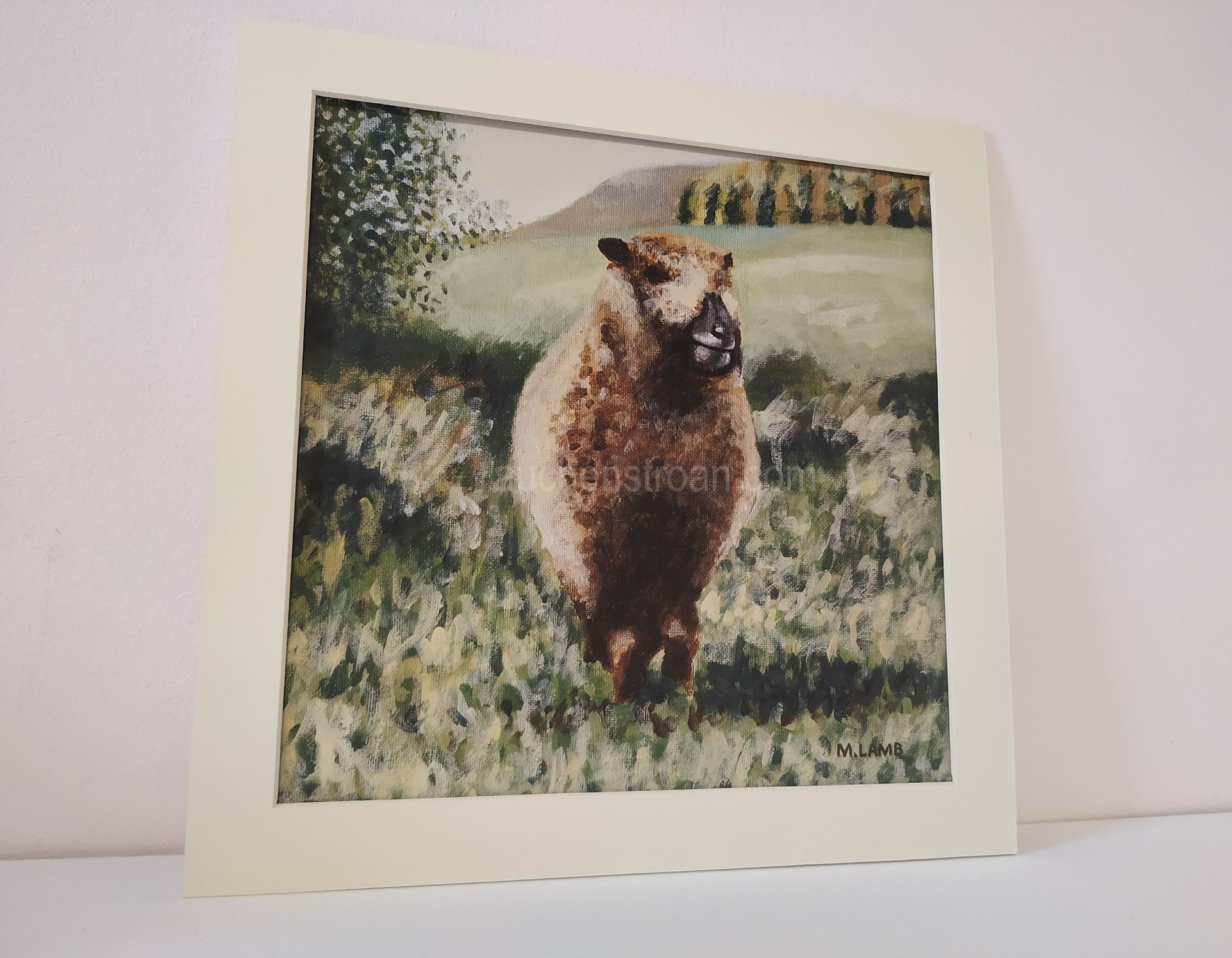 We’re now offering sheep pictures, cute paintings of our sheep. These are available to purchase as prints, (either framed or window mounted), or as one off originals.