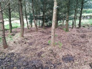 Currently fenced off, the copse comprises mostly conifers (we would have preferred more of a variety of trees and are already planning interplanting some deciduous trees in amongst the evergreens). But the location of the copse is good so we’re going to work with it.