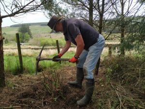 This done, we got our secateurs, loppers and pick axe and began work on the brambles. The copse was absolutely choked with them, they completely carpeted the ground and were halfway up the trees. We really had our work cut out.