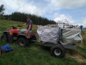 Then Adrian had a brainwave, we have a copse ideally situated in one of the sheep’s favourite fields. The trees are mature and would provide plenty of shade. It wouldn’t be great grazing, but as an alternative field shelter it would be just the ticket!