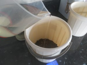 I trudged back to the house and had a cup of tea.  I pondered things for a while and decided it would probably be best to contact Dengie’s for advice.  I sent them an email explaining my predicament and to my delight a reply came back the very next day.  They suggested making the mixture a teeny bit dryer, more ‘wet-crumbly’ than ‘wet-sloppy’.  They also suggested adding ewe-nuts which I’d already done, but this time I added a few more.  I experimented a bit and came up with what looked to be a good consistency.  20g of alfa-beet, 20g of grass pellets, 20g ewe nuts and 160g water.  Three hours later, off I went again with my buckets.  This time to my delight, they stuck their heads straight in and scoffed for all they were worth!