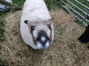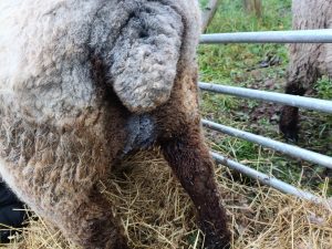 Next we worked on Yaar, he’s our big beautiful wether (castrated tup) with a very friendly nature. Adrian had no trouble at all asking him to follow him into the pen. As I was trimming around his eyes I spotted a tick on his eyelid and sorted that out with my trusty ‘tom tick remover’.