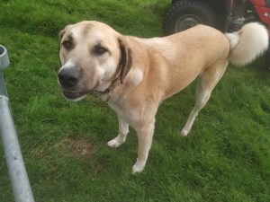I set off after breakfast with my bucket containing: shears, maggot oil, cotton wool pads, Protego powder spray, nitrile gloves, halter and sheep nuts. The dogs came with me as they like to hang around with the flock whilst clicking into guard mode. George and Elliot are both Sheep Guardian dogs, George is a Hellenic Shepherd and Elliot is a Turkish Anatolian and they love nothing better than to mooch around with the flock whilst keeping a watchful eye out for bears and wolves, (the Scottish equivalent of).