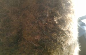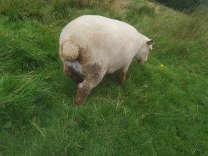 Most sheep are protected from blowfly attacks through the use of sprays which work as a deterrent. Our little flock however is organic so this means we don’t spray them, instead we bring them in to check regularly and are always on the lookout for ‘the signs’. ‘The signs’ meaning how the sheep behaves when she’s been struck by a blowfly. These start off very subtle and can be easily missed, it’s usually a slight change in demeanour, a look in the eye, an odd sitting position. It then progresses as the irritation builds and the sheep will try to scratch the affected area. She’ll not usually be able to reach and this will cause her distress. As the days pass she’ll show signs of depression, hang her head, stand in a corner, lie down and eventually give up.