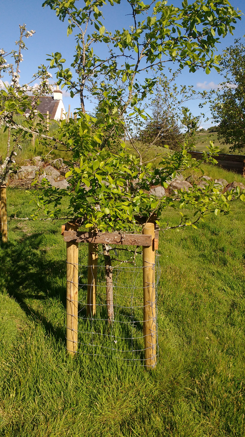 One other job was protecting the fruit trees. Last time the sheep were in here, the temptation was just too much and a few trees had their bark nibbled. So, each tree now has a little cage surrounding it. Given each tree has 4 posts, that was a lot work knocking those in. The multitude of subterranean rocks didn’t help, so some of the posts are not quite straight. But the main thing is, the trees are safe now.