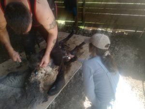 Home / Sheep / Shearing 2024 / on hand with wound spray