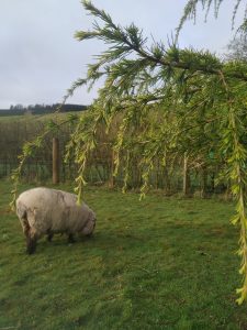 We also love the new bit, it’s great to know we can give the sheep variety, particularly access to trees. Trees give perfect protection against the elements; in the winter they provide wind breaks and in the summer they provide cool places to sit under and chew the cud.
