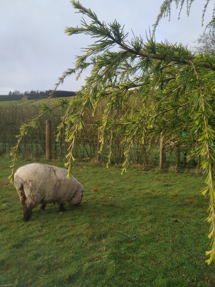 In the new bit, there’s a Himalayan Cedar tree which somehow we forgot to protect. But the sheep didn’t seem that interested in it and so we thought no more about it.