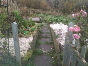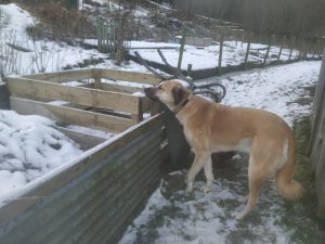 Obviously the roosting area wasn’t an ideal place to nest but we wondered if Betty felt more comfortable there. She’s a big girl and we thought perhaps she had decided the nest box was too small. So we went with Betty’s decision but would need to put some nesting material down for her if we were going to give her hatching eggs to sit on. Only one problem, we didn’t want to disturb her as she’d already had one disturbance with the move. After some pondering we decided to wait until she popped out for food and quickly nip in then and put down the nesting material. This window of opportunity was very small however as broody hens only come off their nests for about ten minutes a day, and only then if it’s warm enough to leave their eggs.