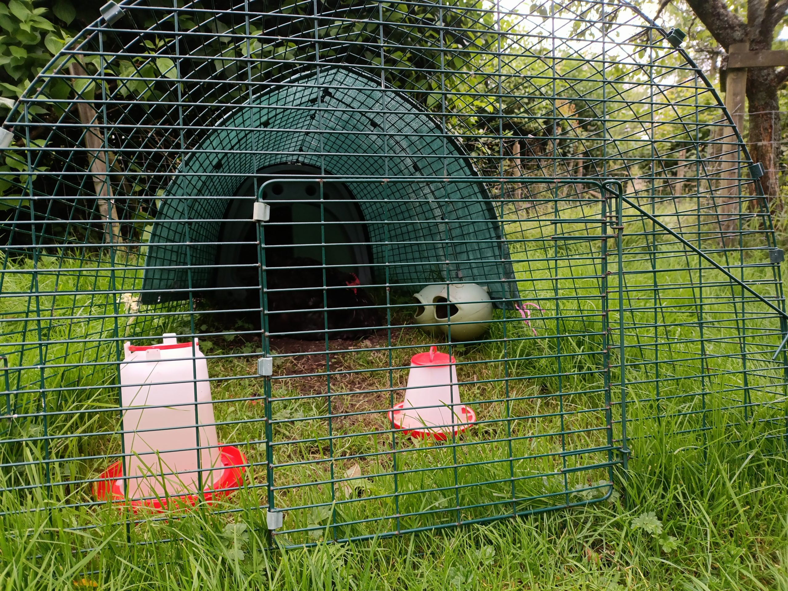 The best time to move a broody hen is at night when they’re dopey.  So we waited until dark which meant it was a late night for us as it doesn’t get dark here in Scotland until nearly midnight (in the summer at least).  As night fell we tiptoed out and carefully extracted Betty from the main coop, plus one of her eggs, and without too much ado we popped her into the nursery coop.  Phew, phase one complete.