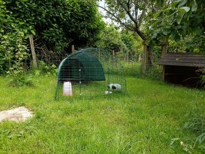 The best time to move a broody hen is at night when they’re dopey. So we waited until dark which meant it was a late night for us as it doesn’t get dark here in Scotland until nearly midnight (in the summer at least). As night fell we tiptoed out and carefully extracted Betty from the main coop, plus one of her eggs, and without too much ado we popped her into the nursery coop. Phew, phase one complete.
